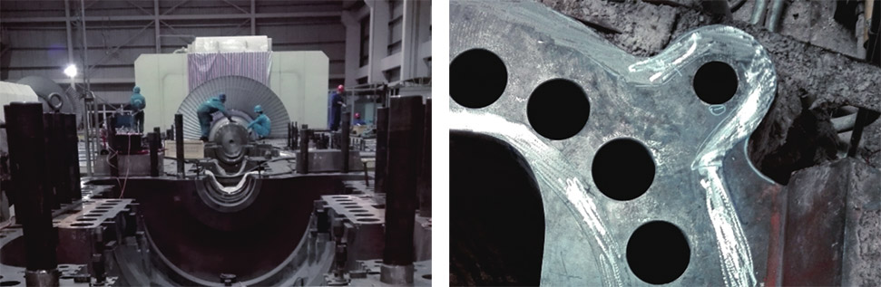 采用微弧焊接技術、上下缸對研等方式進行汽缸結(jié)合面漏汽修復,消除變形量。